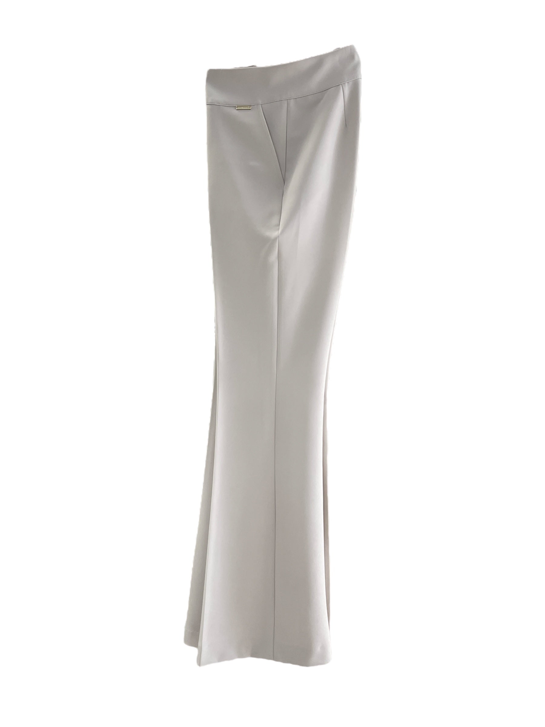 Basic trousers in stretch technical fabric. Consistent fabric. High waist with double button and zip, side pockets. Narrow leg and flared bottom, regular fit. Fabric composition 88% polyester 12% elastane.