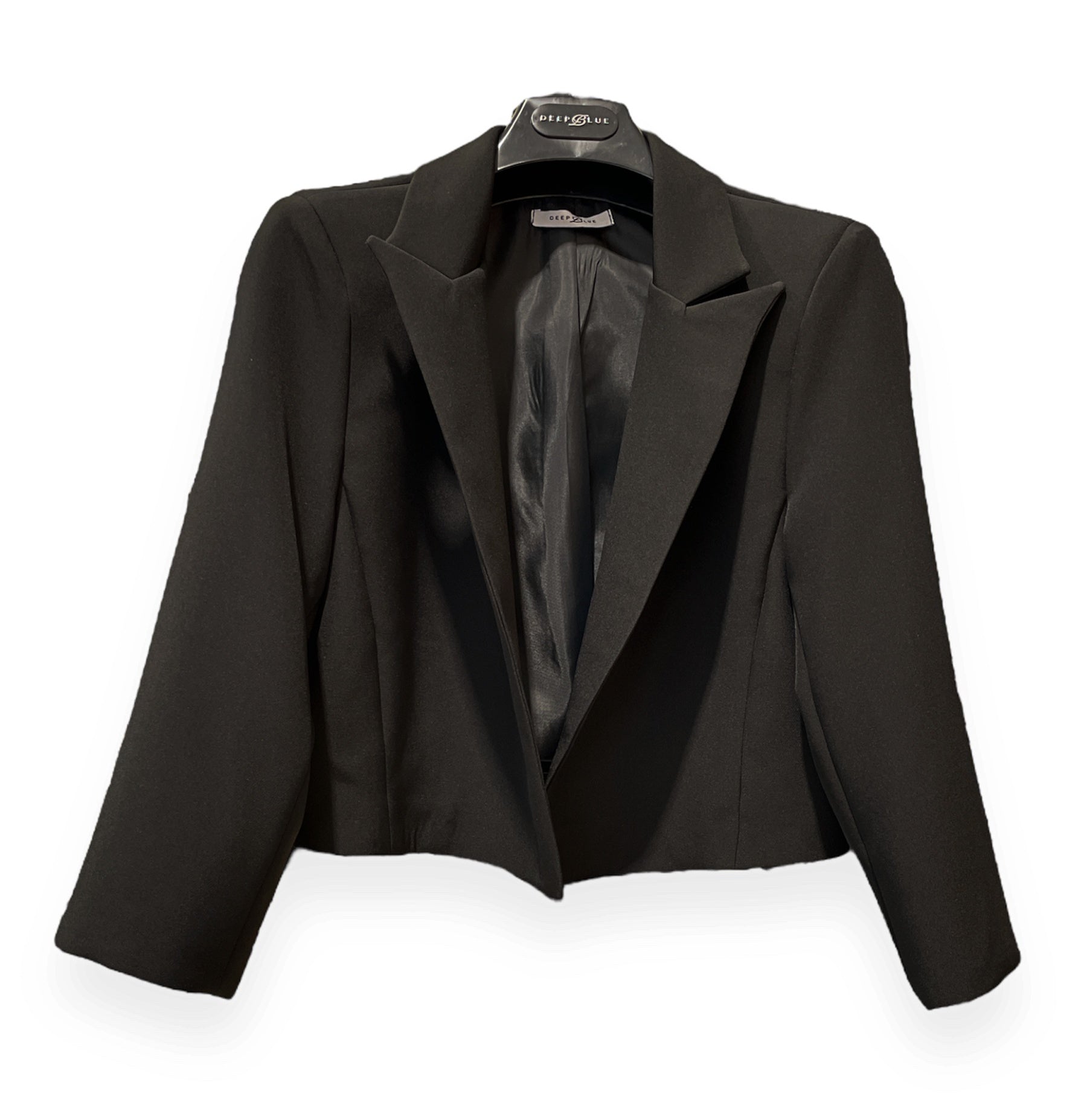 Bolero corto in tessuto tecnico elasticizzato. Collo con revers a lancia, senza chiusure. Maniche lunghe, fodera in tinta in tessuto lucido. Crea il completo con il vestito abbinato. Vestibilità regolare. Composizione tessuto 88% poliestere 12% elastan.