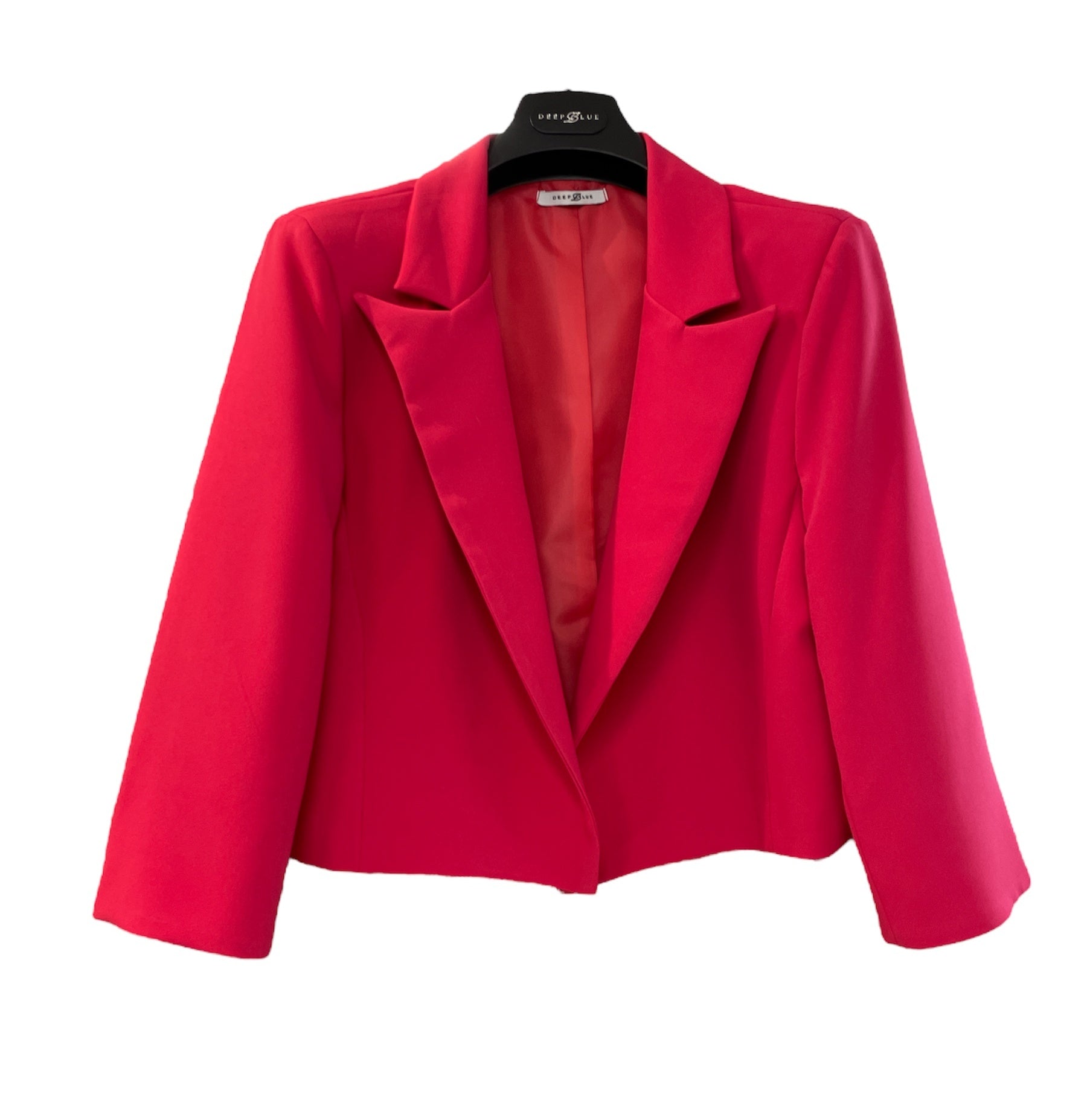Bolero corto in tessuto tecnico elasticizzato. Collo con revers a lancia, senza chiusure. Maniche lunghe, fodera in tinta in tessuto lucido. Crea il completo con il vestito abbinato. Vestibilità regolare. Composizione tessuto 88% poliestere 12% elastan.