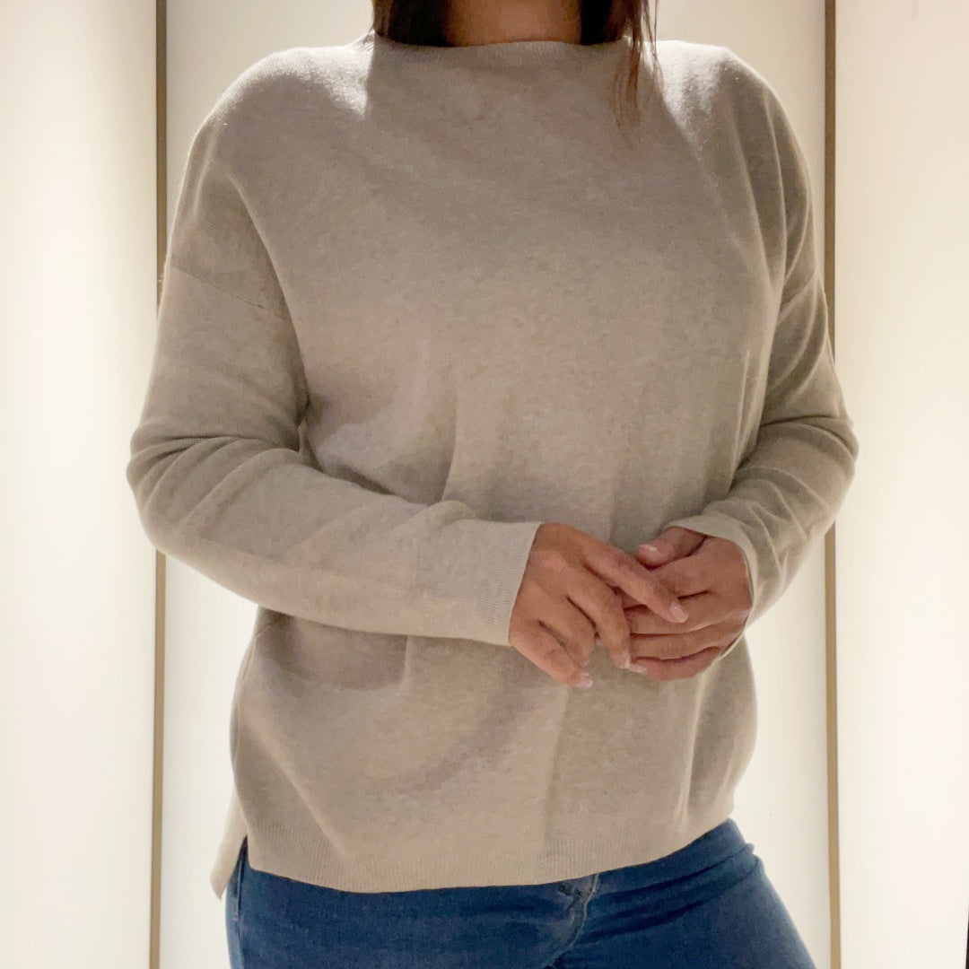Maglia donna oversize in tessuto morbido misto viscosa. Girocollo ampio, spalla raglan, corpo ampio, spacchetti laterali. Vestibilità comoda. Taglia unica, veste fino alla L. Composizione tessuto 60% viscosa, 30% poliammide, 10% elastan.