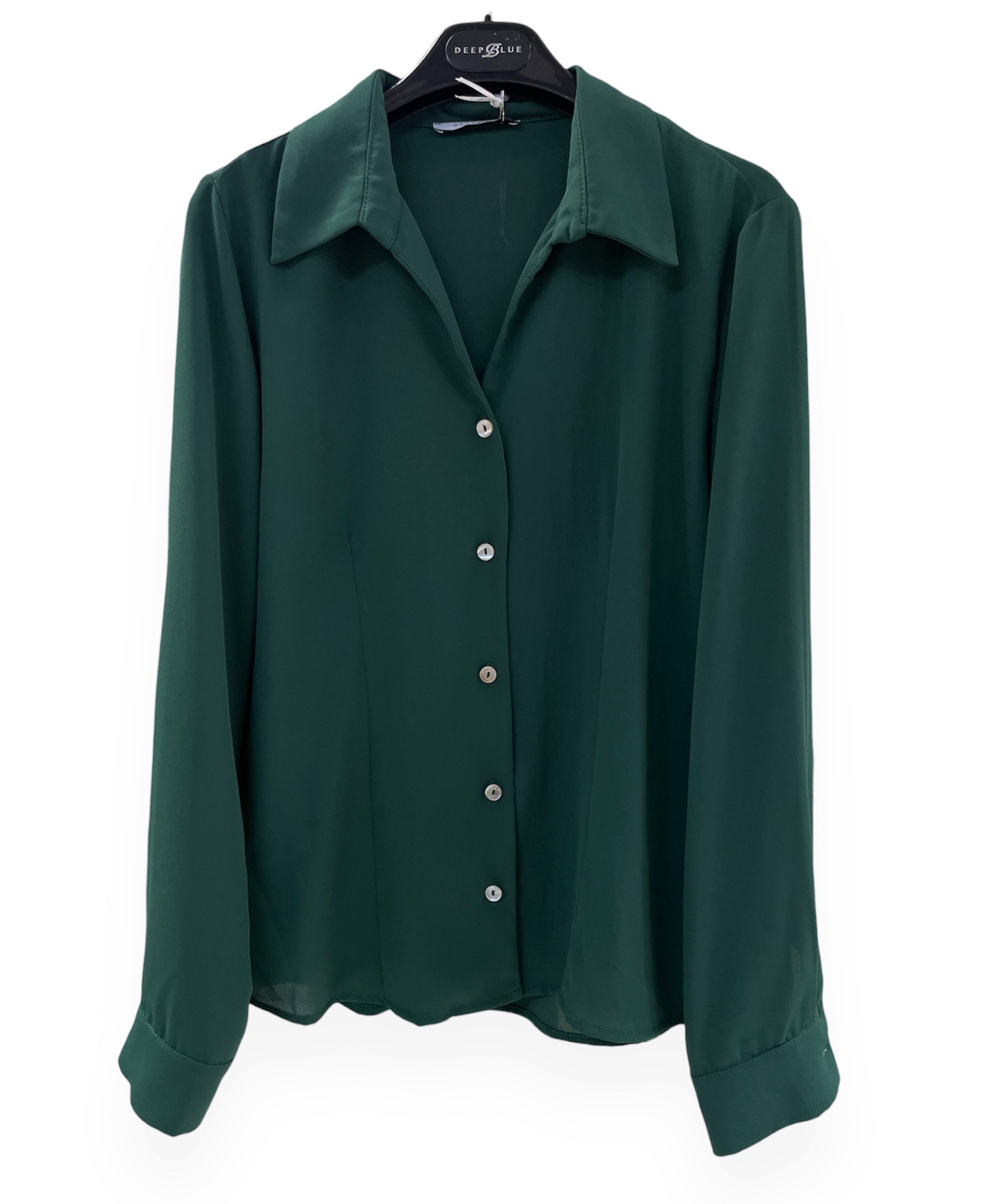 Basic shirt in 100% viscose fabric. Soft wide collar, pointed neckline and closure with mother-of-pearl buttons. Long sleeves with buttoned cuffs. Relaxed fit.