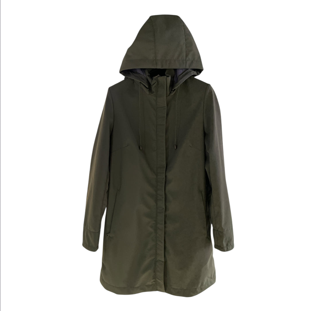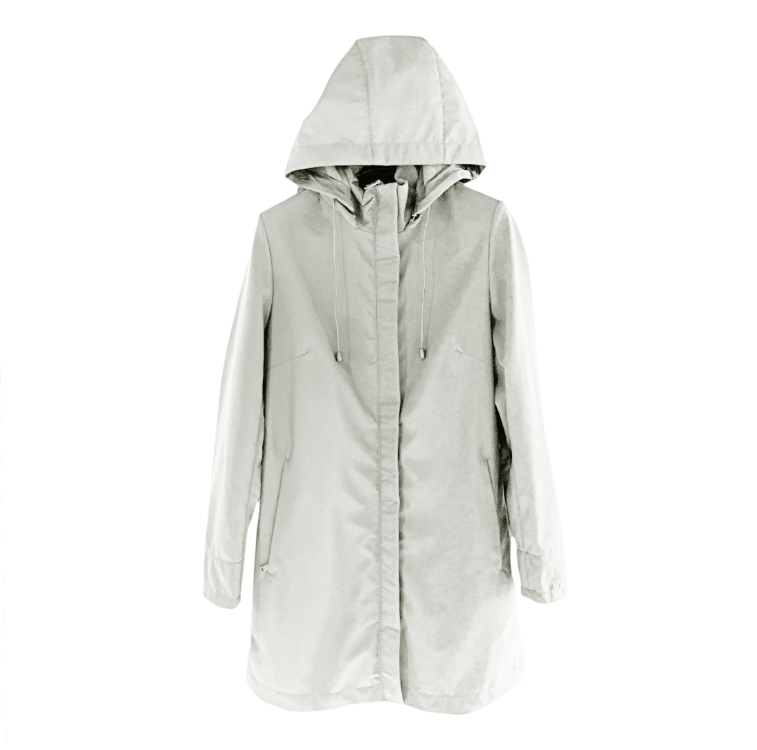 Giubbino modello parka in tessuto tecnico idro repellente. Cappuccio ampio rimovibile tramite zip, cordini in tinta per regolare l'ampiezza. Chiusura con zip centrale coperta da pattina, tasche laterali chiuse da zip. Maniche lunghe con polsini interni elasticizzati. Interno in pile. Vestibilità aderente.