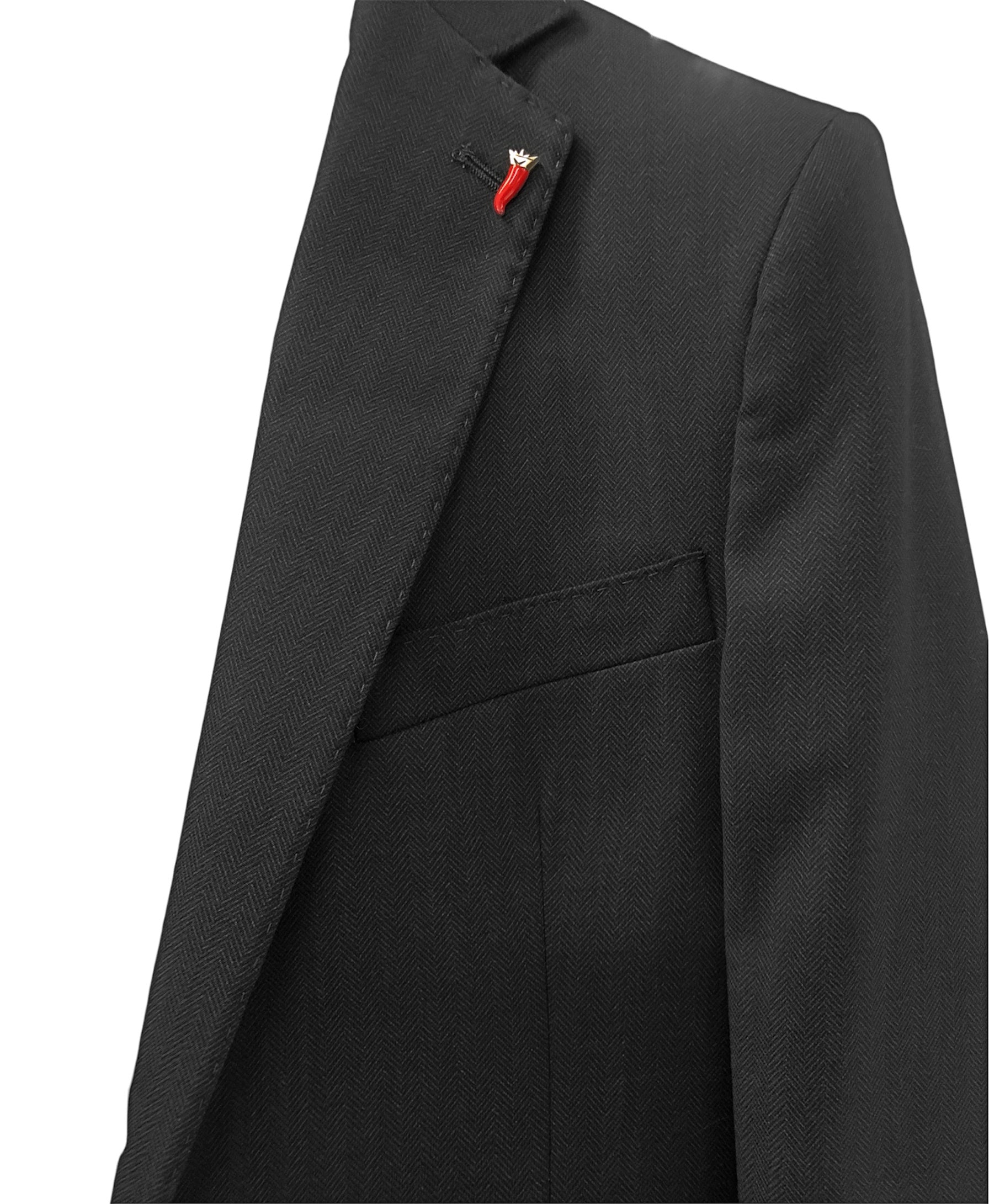 Dress in viscose blend fabric. Tone-on-tone herringbone pattern. Regular lapel collar, long sleeves, two-button closure, side flap pockets. Slim-fit trousers. Regular waistband with belt loops, side welt pockets, hook and zip closure. Narrow leg and bottom, smooth pleat. Fabric composition 62% polyester 35% viscose 3% elastane.