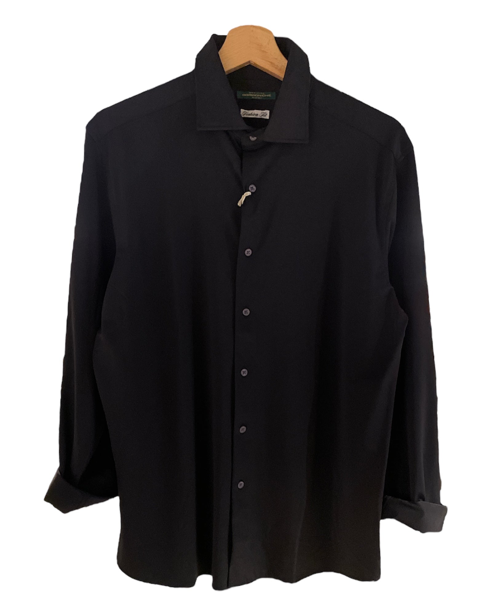 Camicia in particolare tessuto tecnico leggero. Colletto piccolo, chiusura con bottoni in tinta. Vestibilità regolare. Composizione tessuto 76% poliammide 24% elastan.