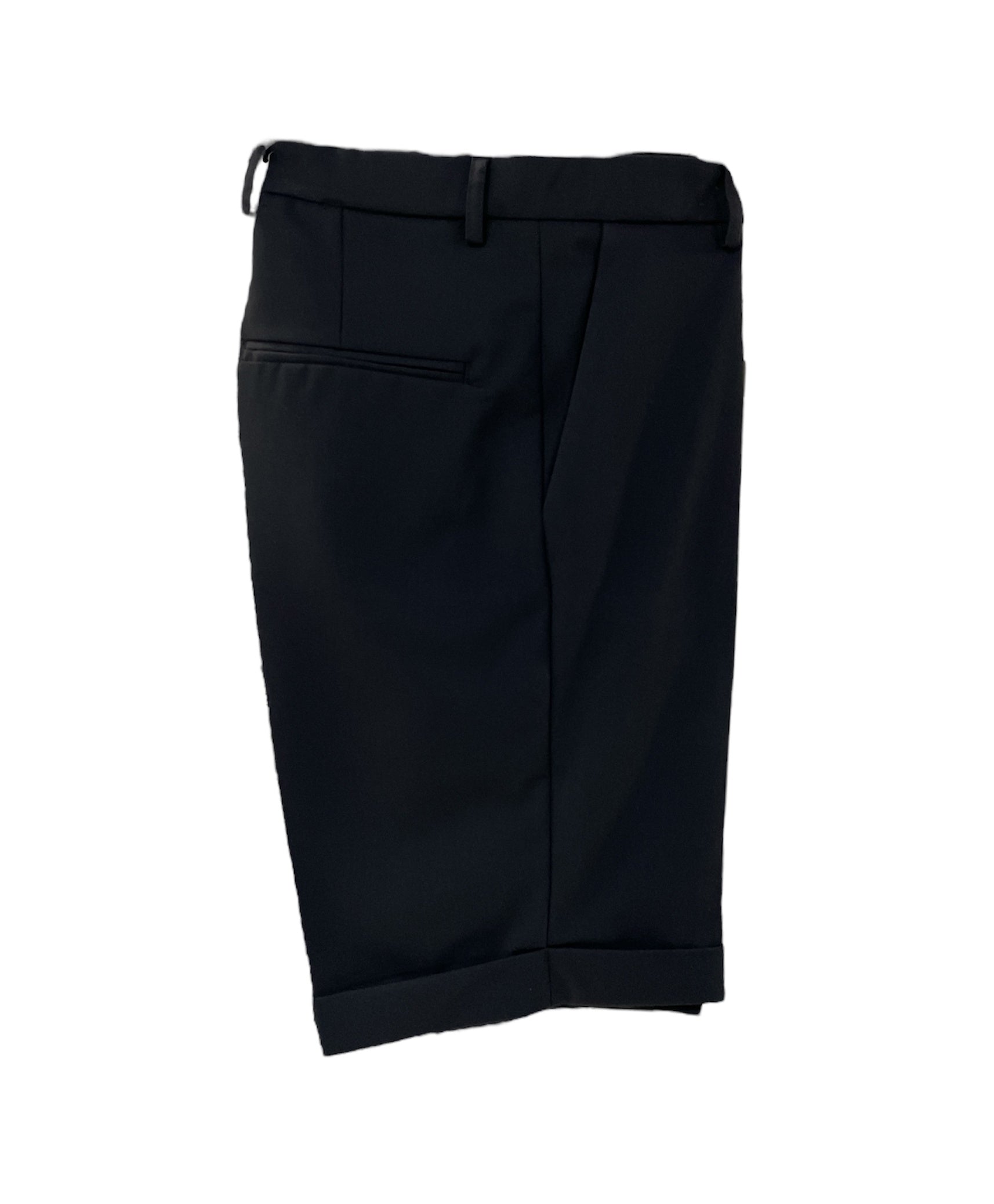 Bermuda basico realizzato sul modello del nostro pantalone più venduto della stagione. Tessuto tecnico misto cotone. Vita regolare, chiusura con zip e bottone. Tasche a filo laterali, taschino posteriore. Gamba slim e fondo con risvolto. Composizione tessuto 65% cotone 32% poliestere 3% elastan.