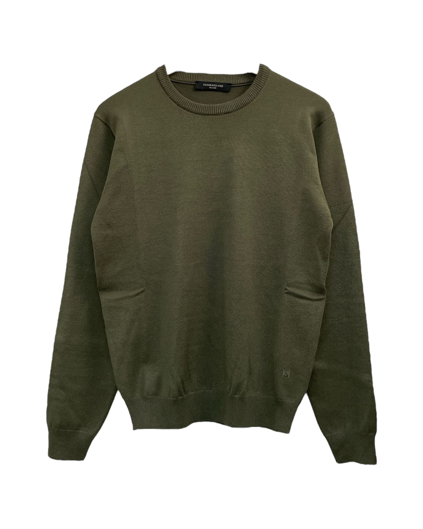 Basic sweater in first weight viscose blend fabric. Regular crew neck, ribbed edges. Brand logo sewn on the bottom. Regular fit.