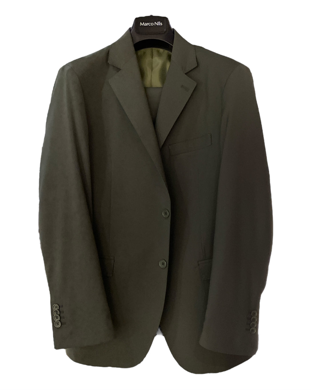 Abito in tessuto leggero misto viscosa. Collo con revers regolari, chiusura monopetto con bottoni in tinta, tasche con pattina applicata. Capo foderato. Pantalone vita regolare, cinturino fisso con passanti, chiusura con zip, pattina con bottone e gancio interno. Tasche a filo laterali e taschini posteriori con bottone. Gamba e fondo slim, piega non rifinita. Composizione tessuto 69% poliestere 29% viscosa 2% elastan.