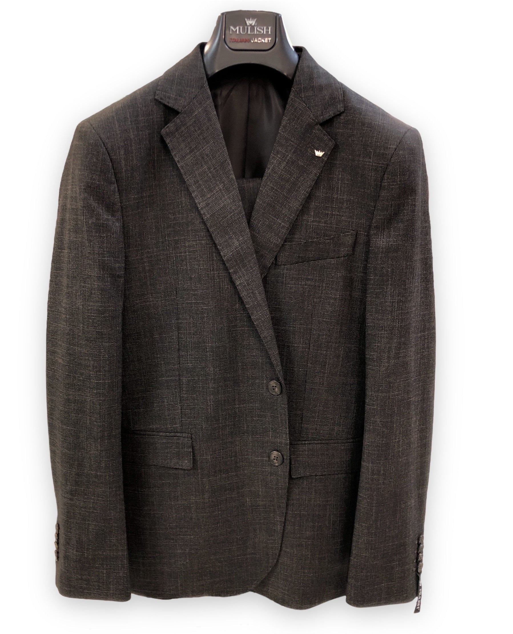 Abito uomo vestibilità slim in tessuto misto viscosa. Giacca vestibilità sagomata, collo con revers regolari, chiusura a due bottoni, tasche con pattina applicata sul davanti. Pantaloni vestibilità sagomata, vita con cinturino chiuso da bottone esterno e gancio interno, gamba e fondo slim. Taglia in foto 50. Composizione tessuto 84% poliestere 14% viscosa 2% elastan.