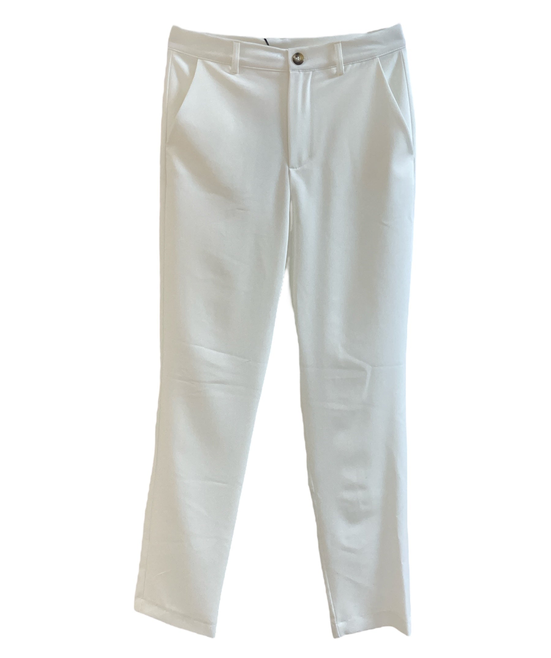 Pantalone in tessuto tecnico elasticizzato misto viscosa. Vita alta, cinturino fisso con passanti, chiusura con zip e bottone. Tasche a filo laterali. Gamba slim e fondo dritto. Vestibilità regolare. Crea il tailleur con la giacca abbinata. Composizione tessuto 78% poliestere 18% viscosa 4% elastan.