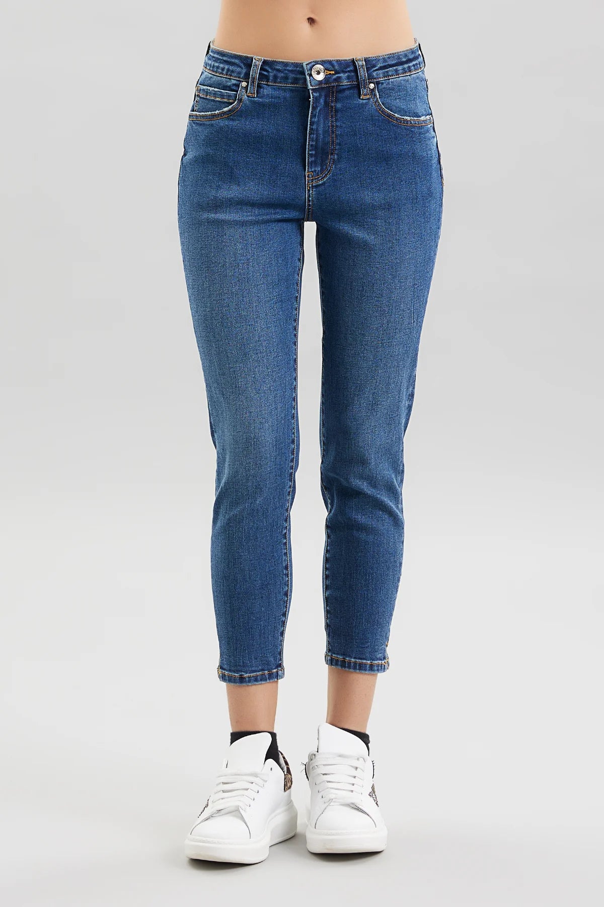 Jeans skinny fit modello capri in tessuto denim di cotone elasticizzato. Vita medio/alta, chiusura con zip e bottone, 5 tasche. Lunghezza capri alla caviglia, spacchetto laterale. Vestibilità aderente molto comoda, consigliamo l'acquisto di una taglia in meno. Taglia in foto 27. Composizione tessuto 98% cotone 2% elastan.