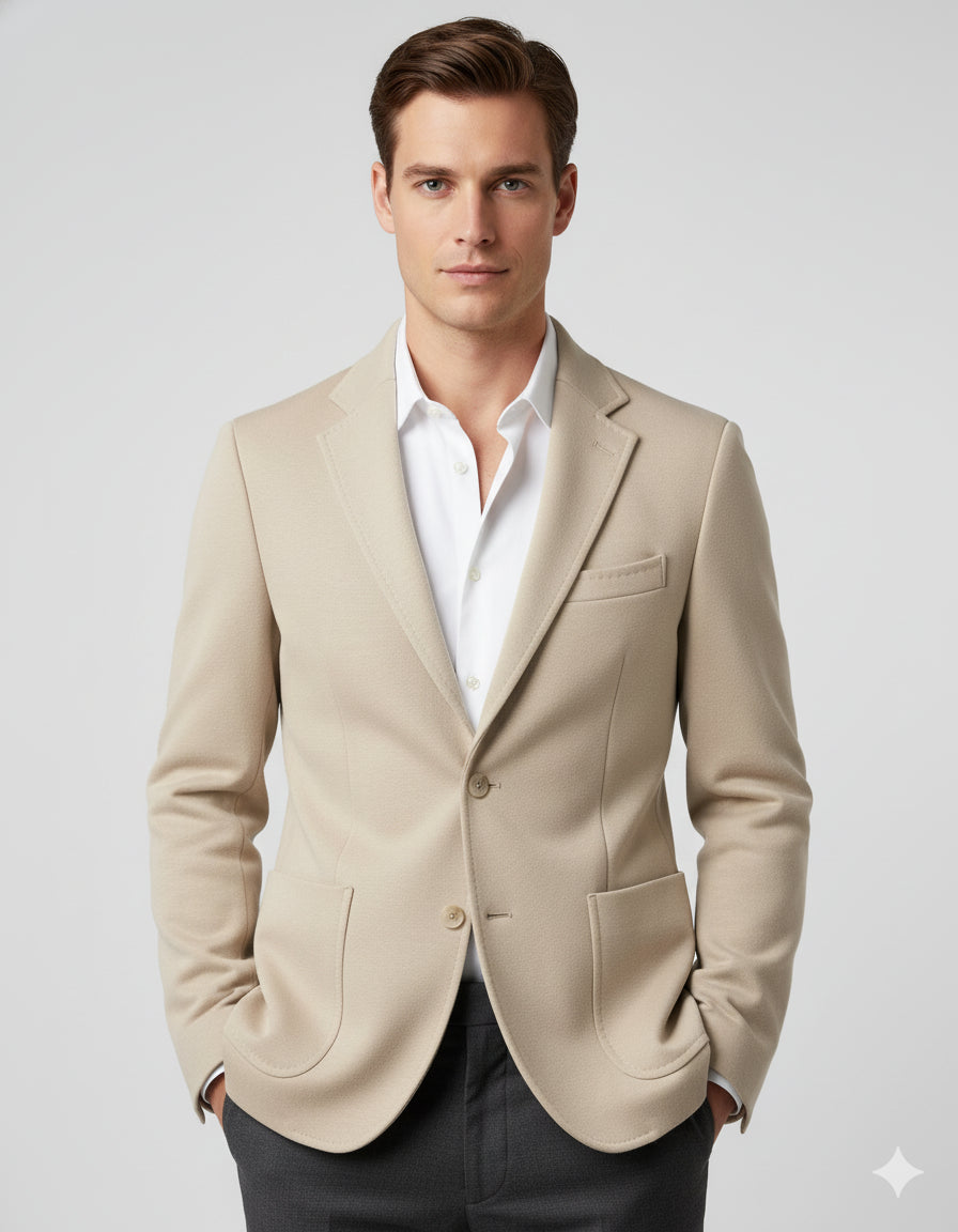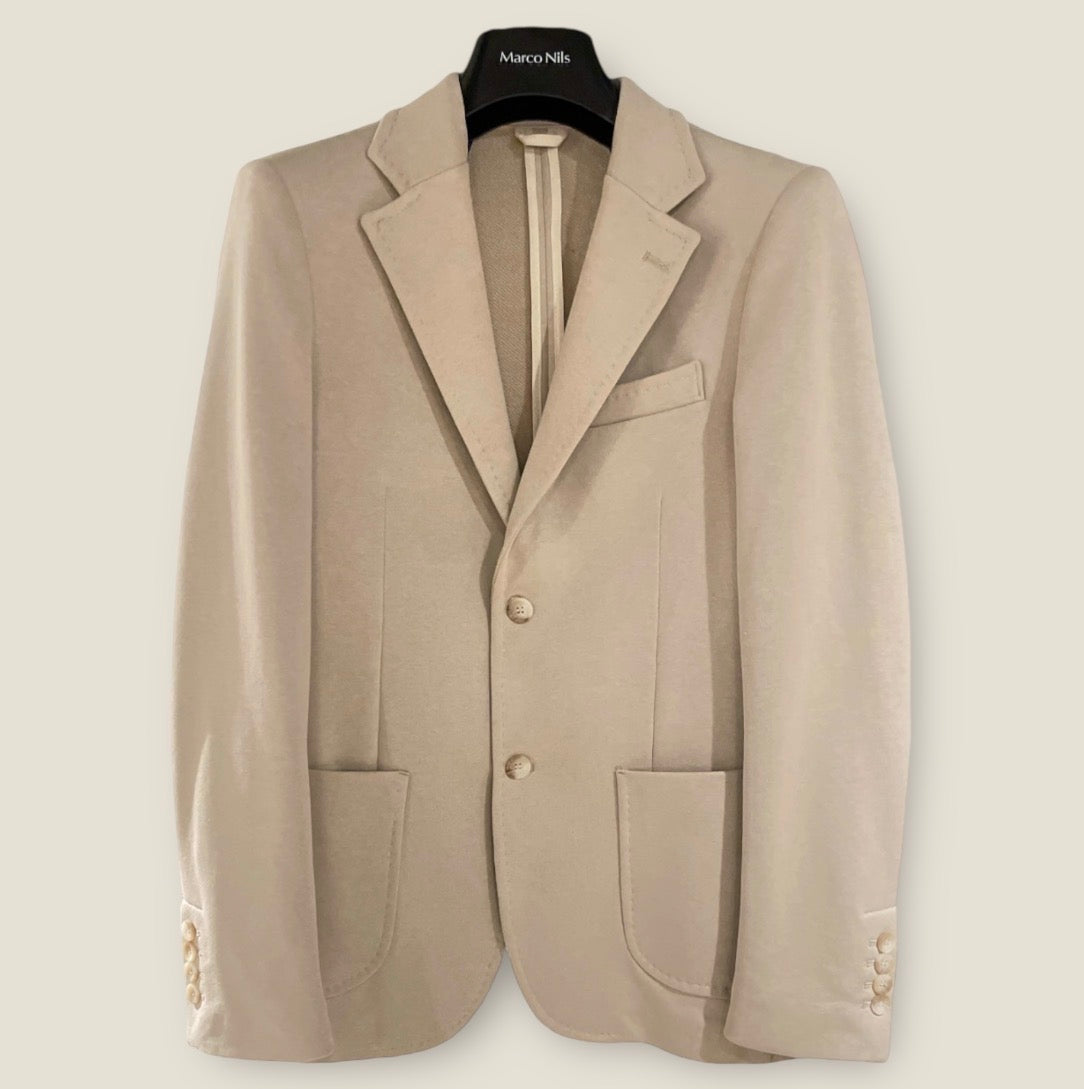 Giacca uomo monopetto in tessuto fustagno effetto velluto. Collo con revers regolari, tessuto lavorato diagonale. Taschino sul petto, tasche a toppa applicate. Vestibilità slim. Capo foderato su spalle ed interno braccia. Composizione tessuto 100% cotone.