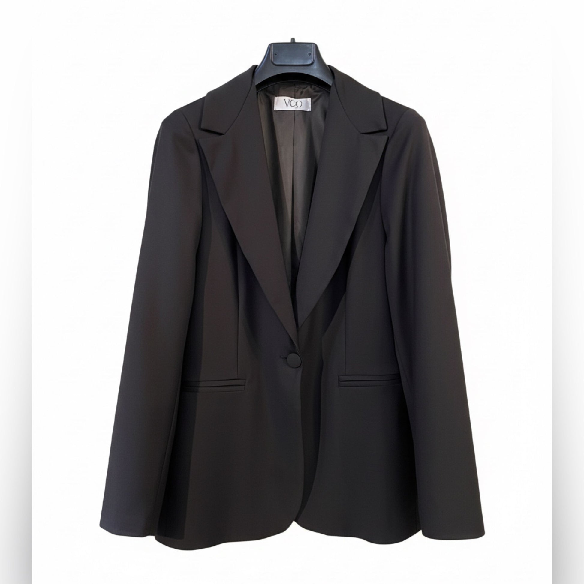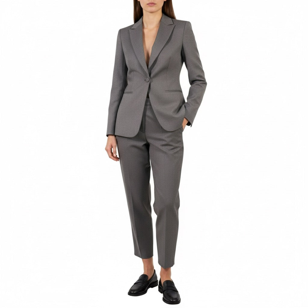 Giacca donna slim fit in tessuto tecnico misto viscosa. Collo con revers regolari, chiusura con bottone rivestito, capo foderato. Vestibilità slim regolare. Crea il tailleur con il pantalone abbinato. Composizione tessuto 66% poliestere 31% viscosa 3% elastan.
