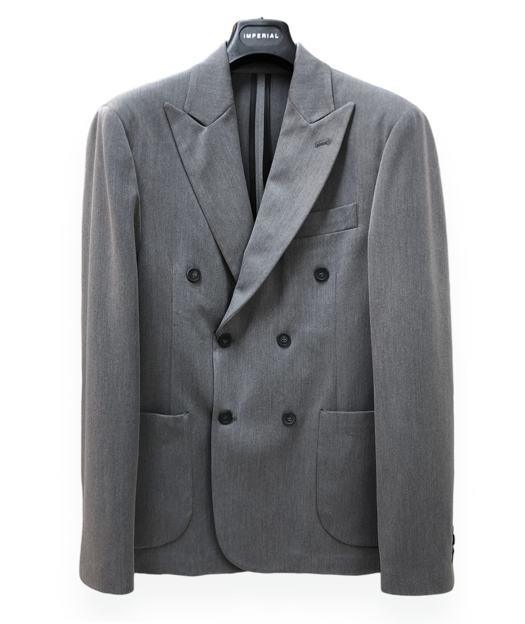 Giacca slim fit in tessuto tecnico elasticizzato misto viscosa. Collo con revers a lancia, chiusura doppio petto con bottoni in colore a contrasto. Tasche quadrate applicate. Fodera in tinta. Vestibilit regolare. Taglia in foto M. Composizione tessuto 78% poliestere 8% viscosa 4% elastan. Crea l'abito con il pantalone abbinato.