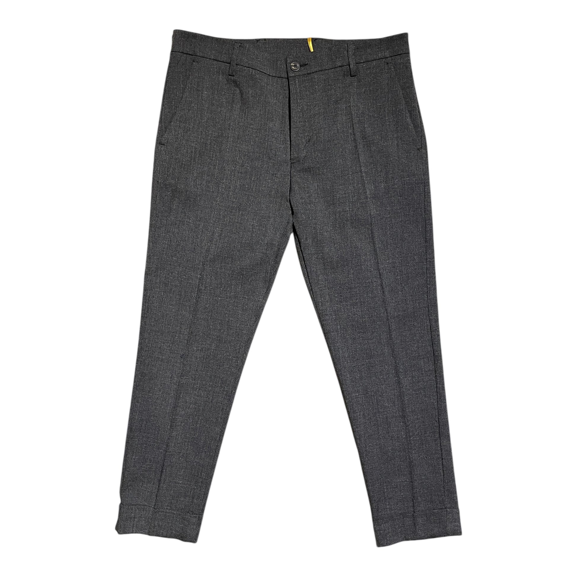 Pantalone uomo basico. Tessuto twill. Vita regolare, cinturino fisso con passanti, chiusura con zip e bottone. Tasche a filo laterali, tasche a filetto posteriori. Gamba slim asciutta e fondo stretto con piega con risvolto, lunghezza capri. Un pantalone adatto ad ogni occasione e ad ogni outfit. Taglia in foto 46. Composizione tessuto 75% poliestere 20% rayon 5% elastan.